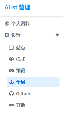 1.进入Alist后台,找到全局设置。